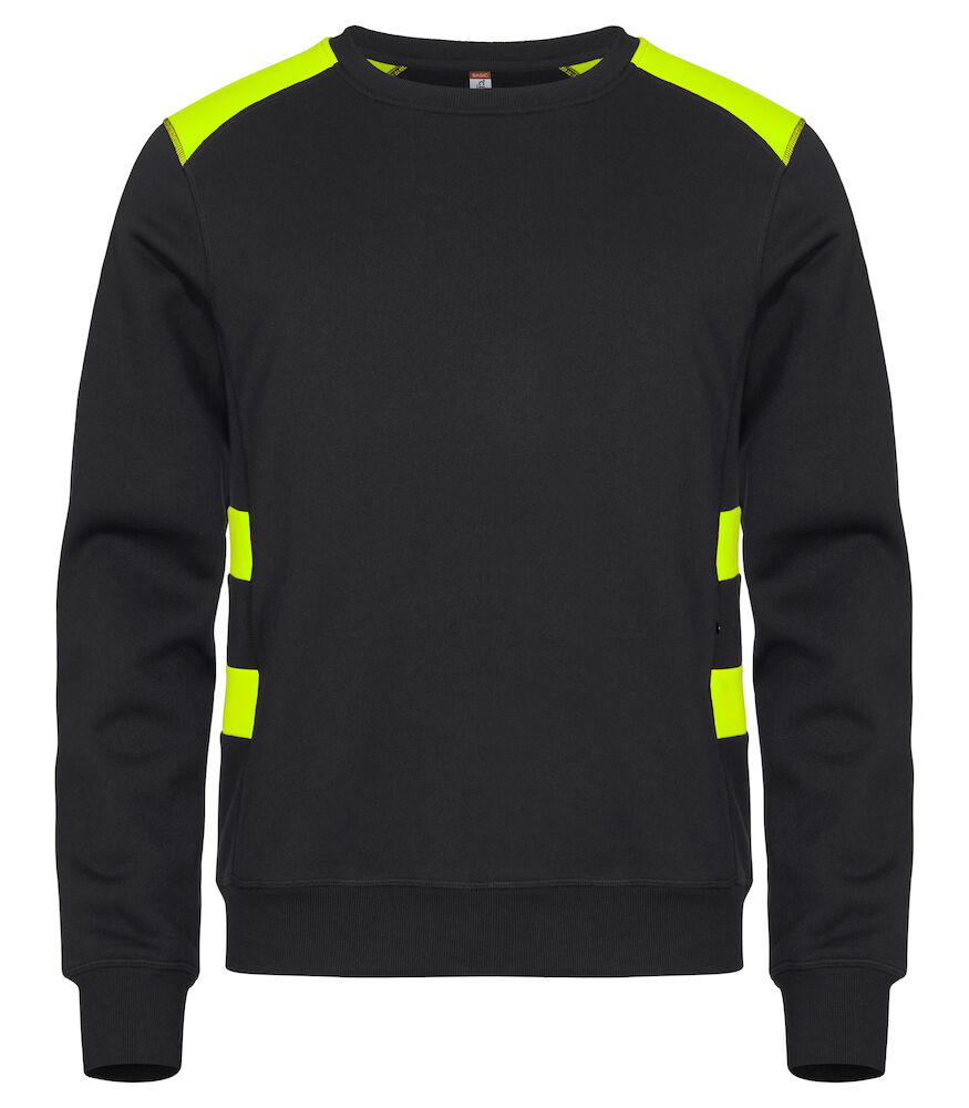En rundhalsad unisex-tröja med kontrast för ökad synlighet. Tillverkad av återvunnen polyester som har en bomullskänsla. En dold sidficka med dragkedja. Muddar och nederkant i ribbtyg. Utrustad med en avtagbar nacketikett för enkelt kunna addera egen avsändare.